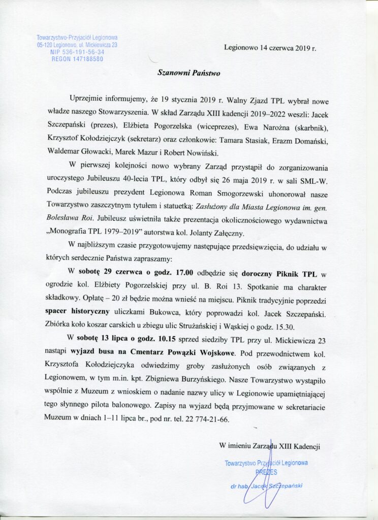 Kontynując informowanie członków listownie, zapraszamy na piknik 29 czerwca!