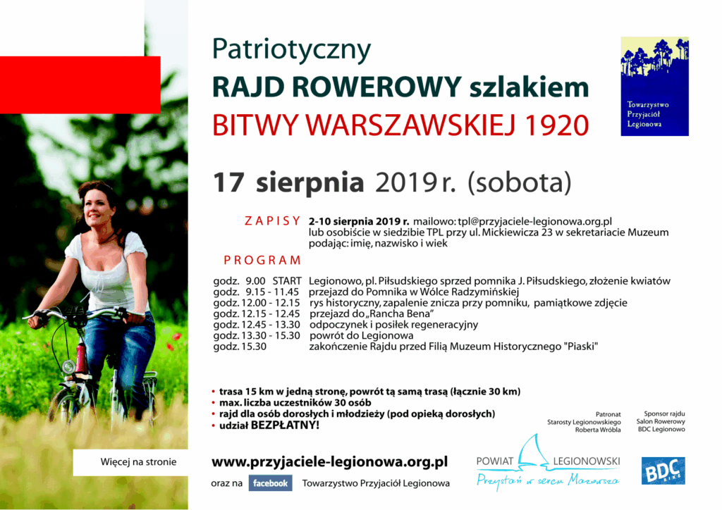 Zapraszamy serdecznie na kolejny Rajd Rowerowy szlakiem Bitwy Warszawskiej 1920 roku, prowadzonego przez Erazma Domańskiego. Zapisy od 2 sierpnia! Zapraszamy!
